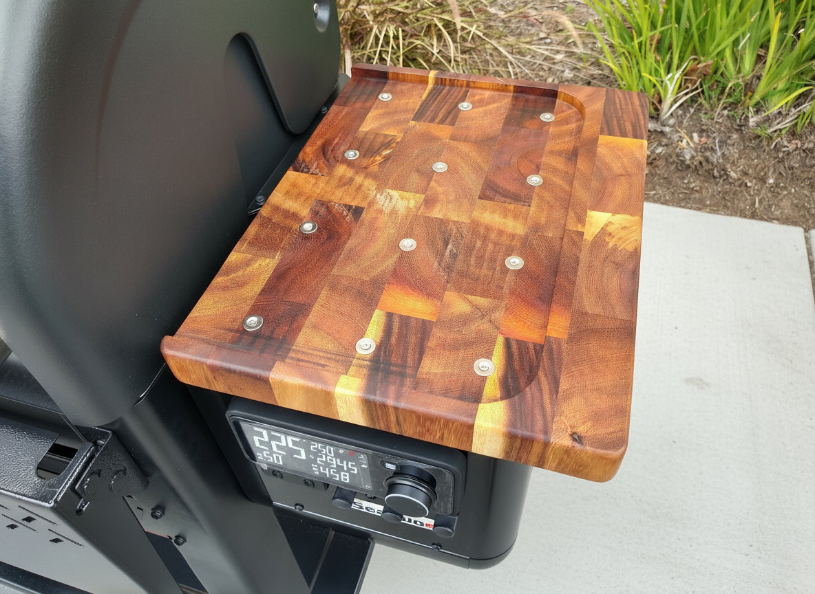 These BBQ Boards® are designed exclusively for Weber Searwood XL 600. While adding the utility of a cutting board into a location with no functional use prior it also adds a beautiful aesthetic!