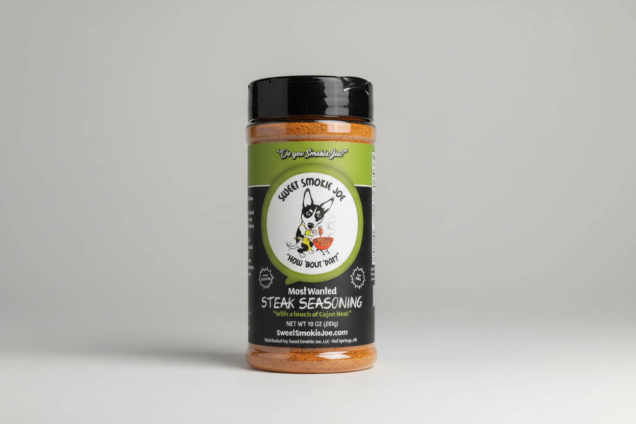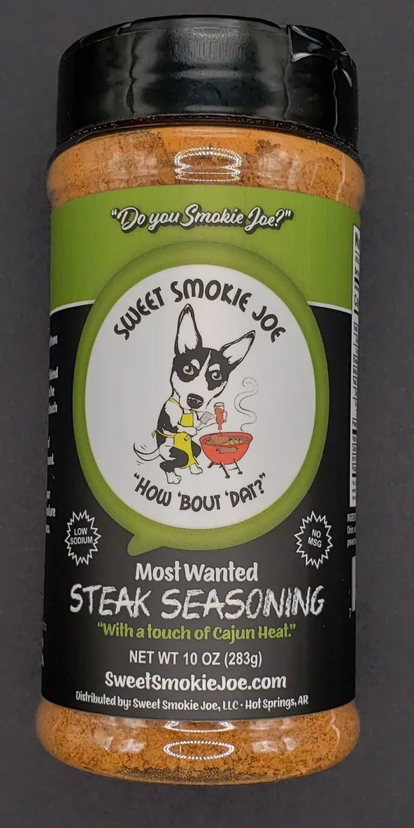 Sweet Smokie Joe has what everyone wants...the best steak seasoning around. With the perfect blend of spices and his signature touch of Cajun heat, you too will discover why this steak seasoning is the Most Wanted!